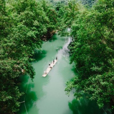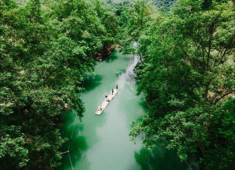 .Bamboo boat Ban An stream/cave
